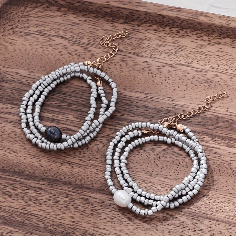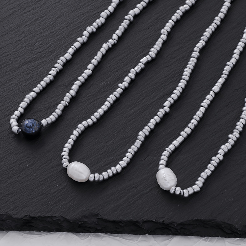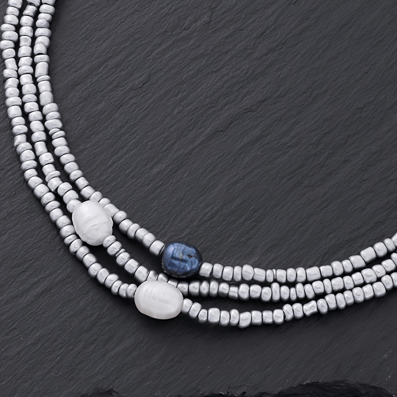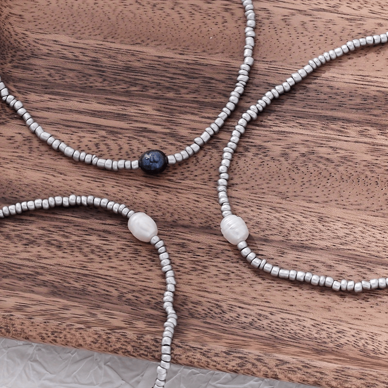 A refined vintage-style set of three necklaces, combining the timeless elegance of freshwater pearls with delicate beads. Handmade with care, each piece offers versatility and charm, whether worn together or separately.