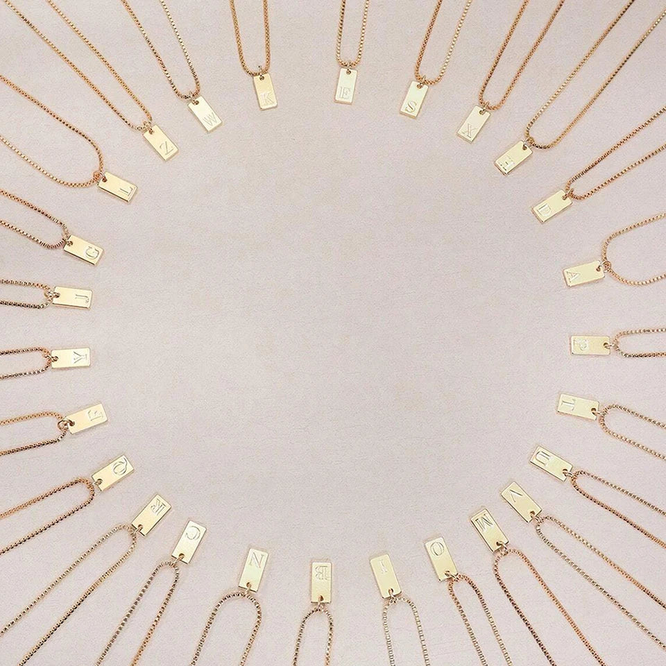 This personalized initial necklace features a sleek rectangular pendant engraved with your chosen letter from A-Z. The minimalist design makes it perfect for daily wear and meaningful gifting.