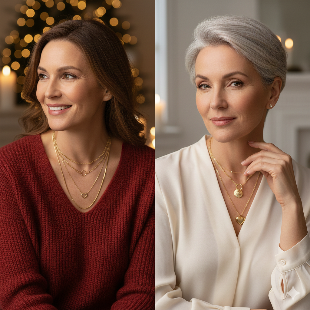 • Meaningful Design: The collection features a variety of timeless styles, from subtle heart charms (perfect for symbolizing love for a daughter or grandchild) to chic, bold snake chains, chunky link designs, and polished medallions. Whether worn alone or layered, each piece tells a story.
