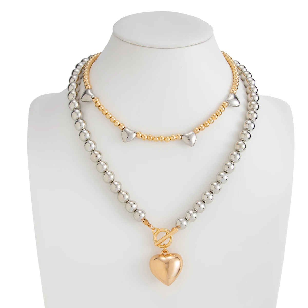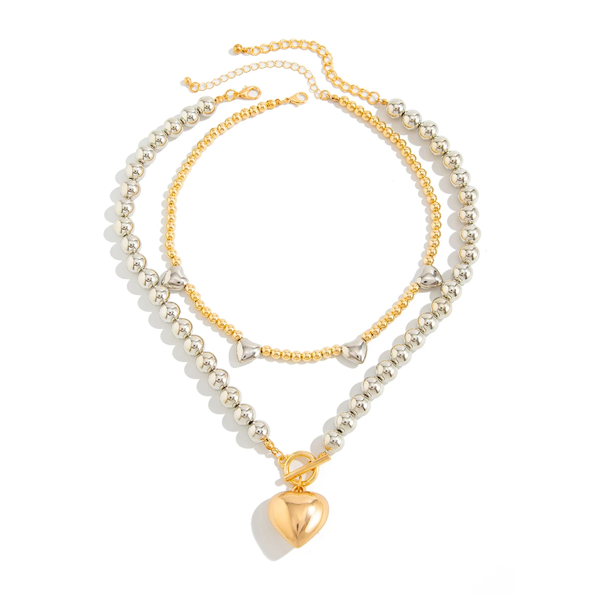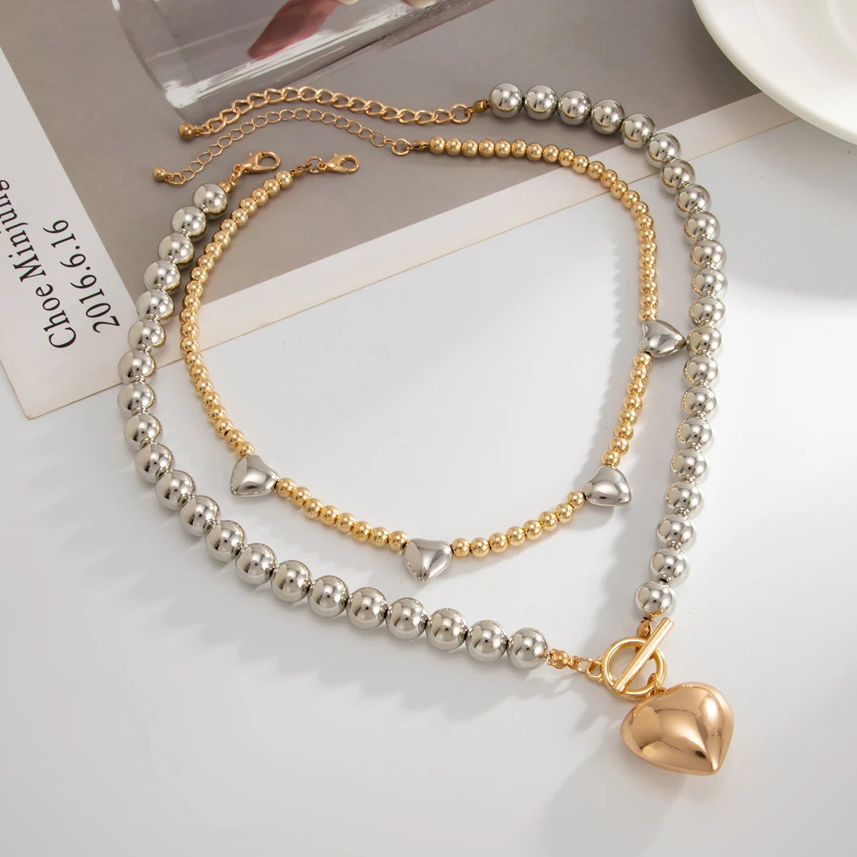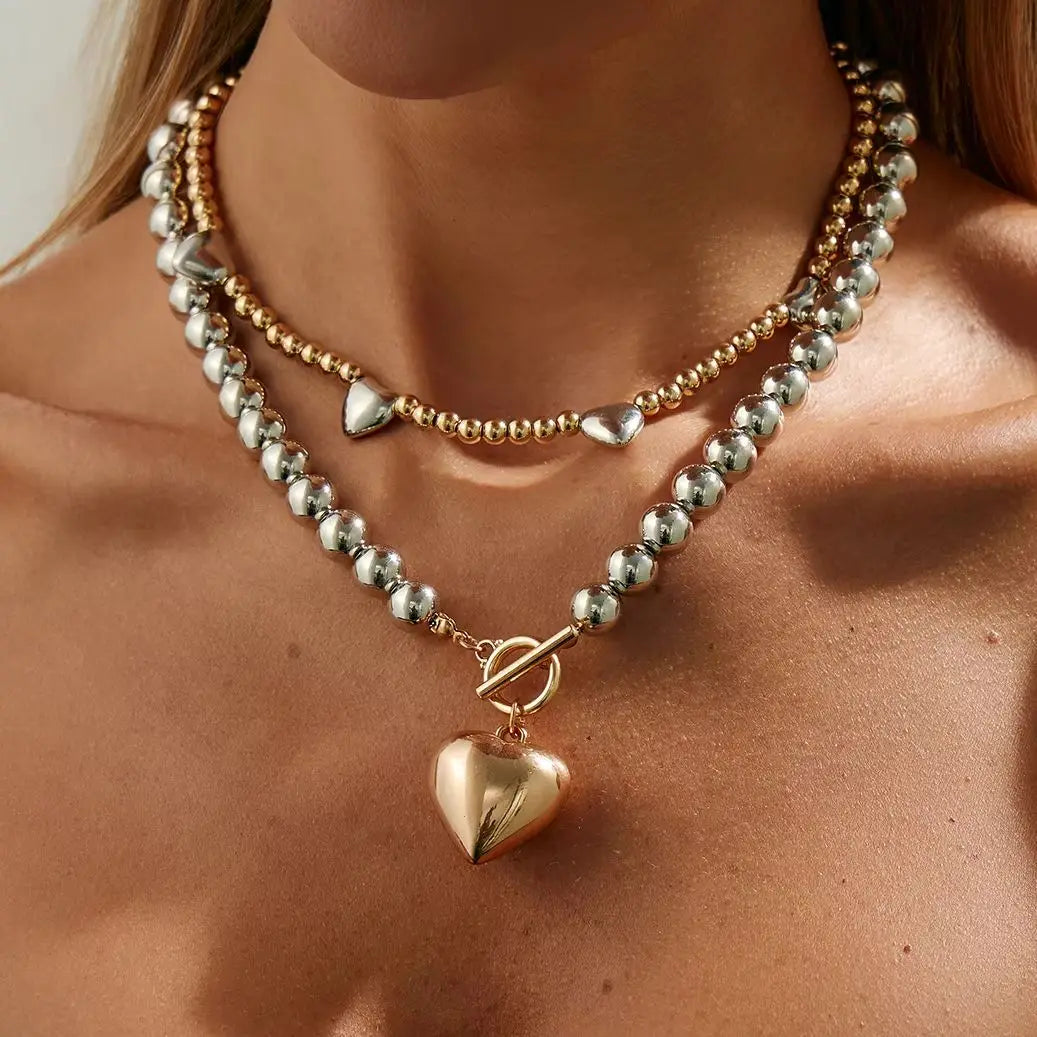 Elevate your jewelry collection with this trendy 2-piece set featuring a striking Love Heart pendant choker and a matching vintage-style bead chain necklace. This dual-layer design perfectly blends punk edge with elegant sophistication, making it a must-have accessory.
