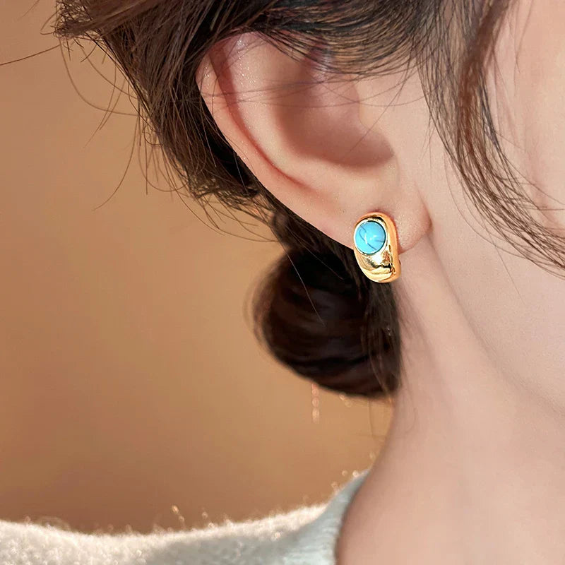 Timeless Turquoise Curved Copper Earrings