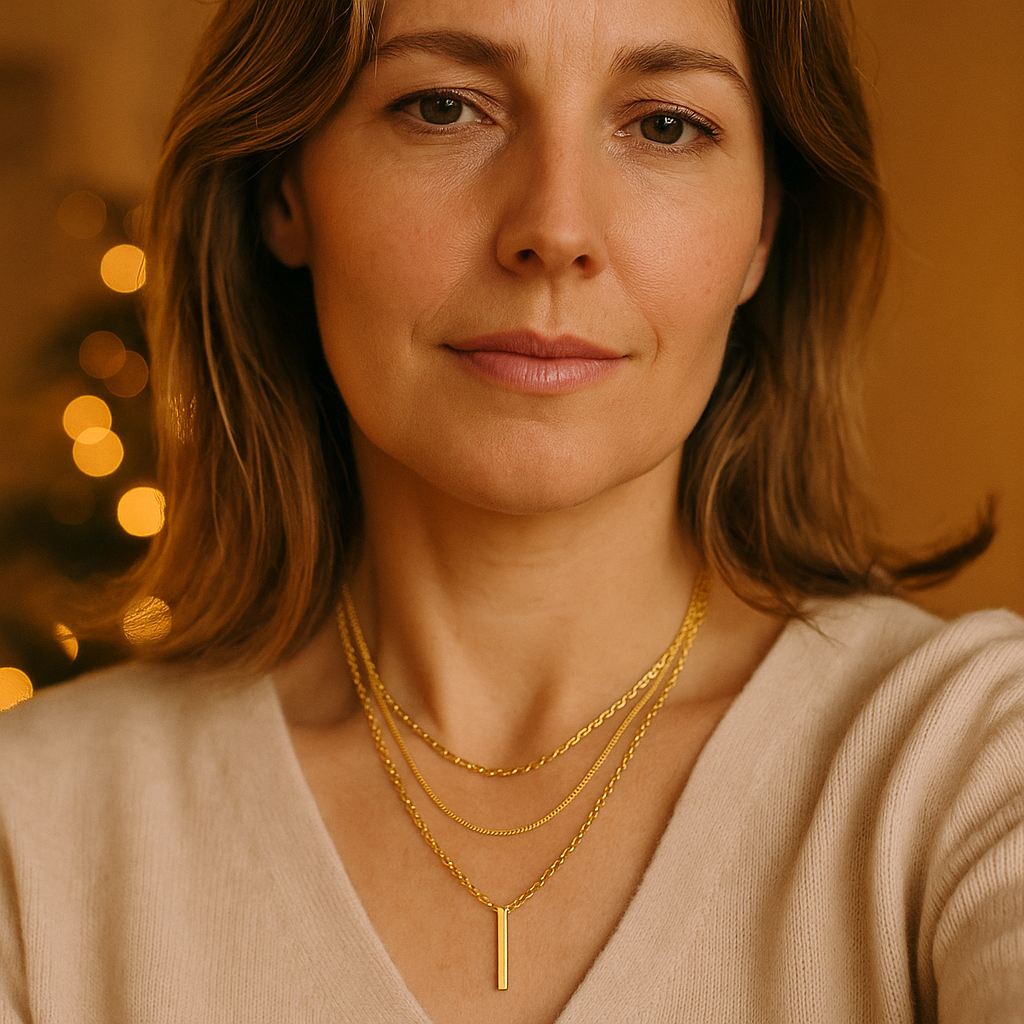 This beautiful layered necklace is the ultimate timeless piece that effortlessly complements any outfit, age, or occasion. The three layers with different chains create an elegant, multi-dimensional look that feels both minimalistic and refined.