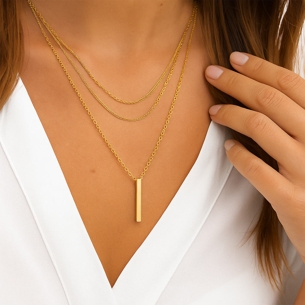 Available in gold and silver, this necklace is crafted from high-quality stainless steel with a durable 18K gold-plated or silver-plated finish — completely color-resistant and built to withstand everyday wear.